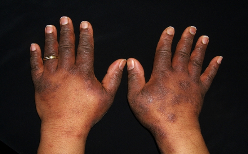 • Ngozi kukauka, kukatika au kuwa na mabaka baka mekundu kama mtu aliyeungua kwa moto
